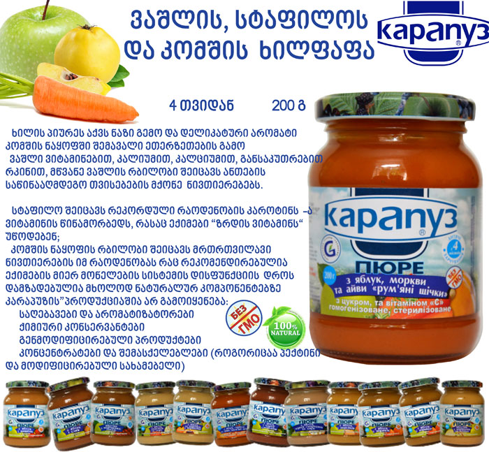 ბრენდი „კარაპუზი’ გთავაზობთ დამატებით კვებას პატარებისათვის 4 თვიდან.