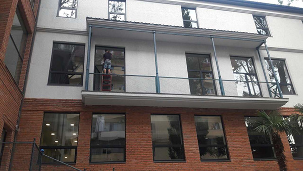 - შუშის ფასადიანი შენობების წმენდა ნებისმიერ სიმაღლეზე